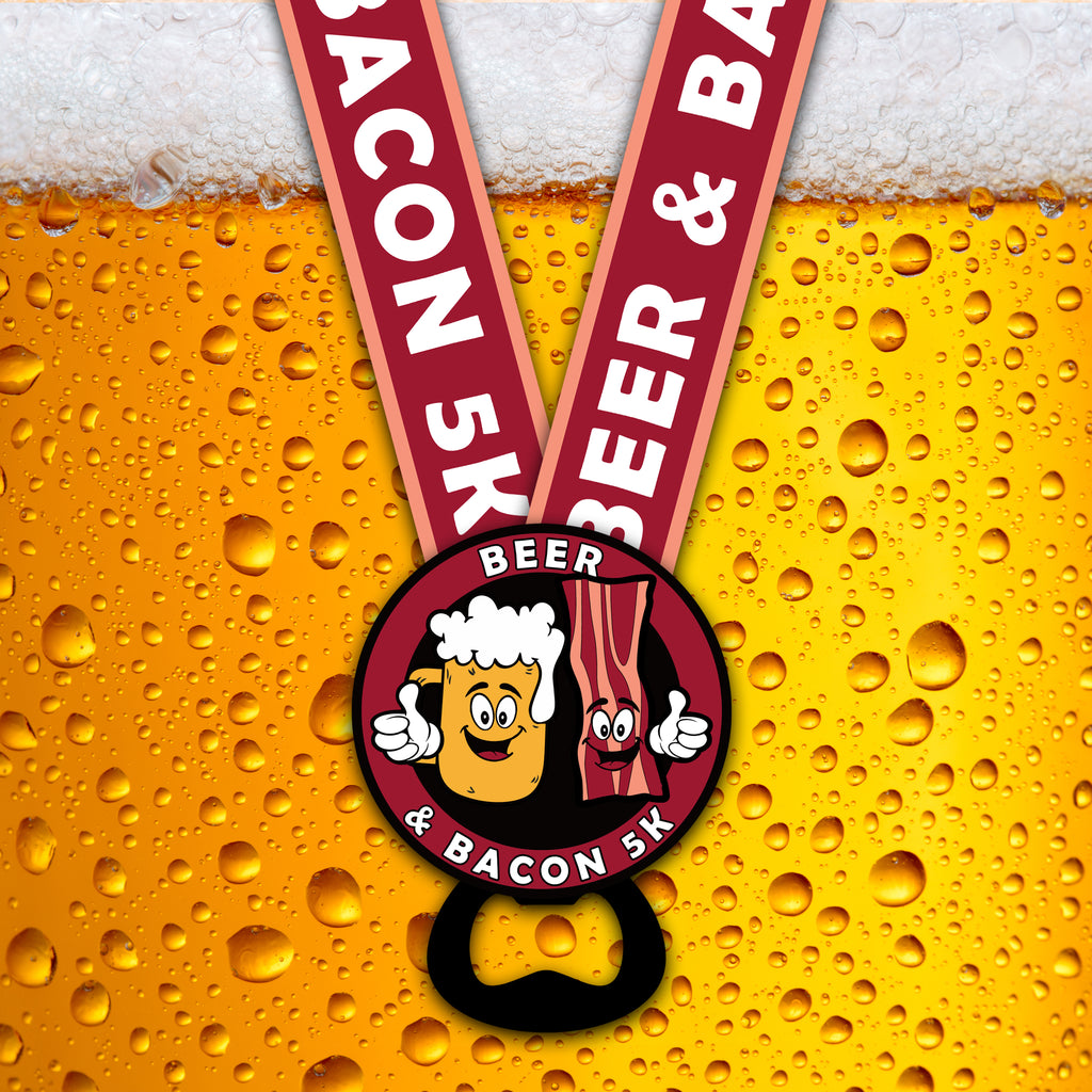 Are Beer & Bacon two of your four favorite things? If so, you’re in luck with the Beer & Bacon 5K! No need to choose which you love more, pair these two exceptionally awesome things with a Virtual 5K. Get out there and tear up the pavement while sweet visions of bacon and beer dance in your head. Your post run reward has never been better. Enjoy this quenching Beer & Bacon 5K finishers medal with integrated bottle opener. Cheers to bacon and beers! Pack comes with a downloadable and personalizable runner’s bib.