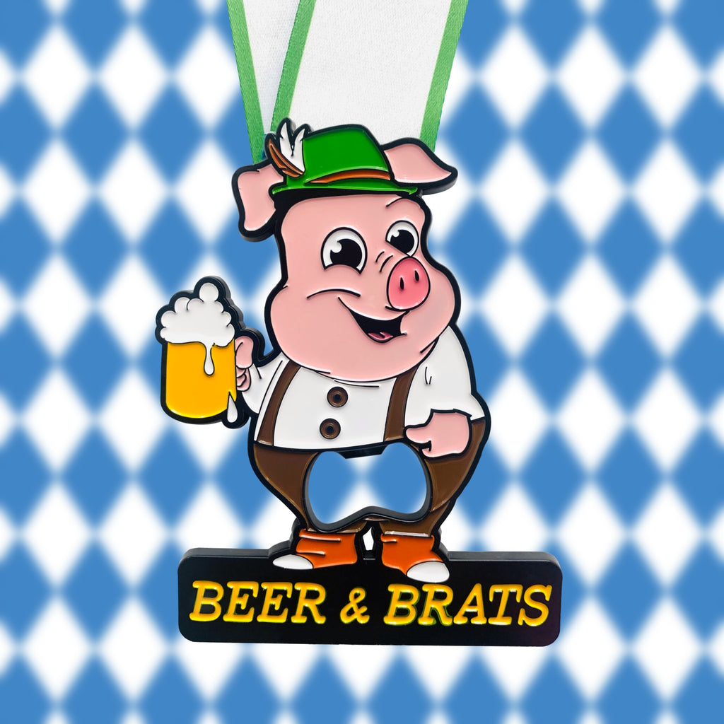 Are Beer & Brats two of your four favorite things? If so, you’re in luck with the Beer & Brats 5K! No need to choose which you love more, pair these two exceptionally awesome things with a Virtual 5K. Get out there and tear up the pavement while sweet visions of beers and brats dance in your head. Your post run reward has never been better. Enjoy this quenching Beer & Brats 5K finishers medal with integrated bottle opener. Cheers to Beer & Brats!!!