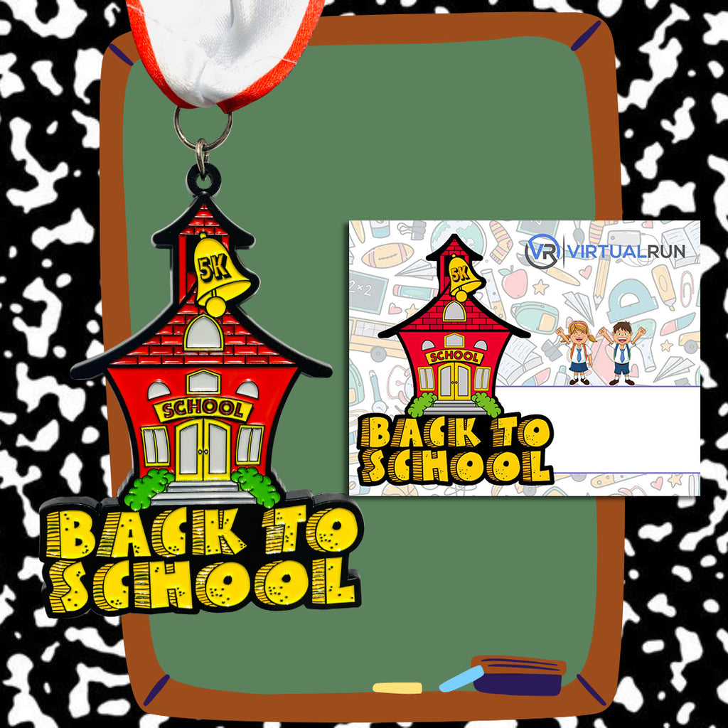 School days, school days, these are golden rule days. The end of summer means back to school time! Notch off your physical education requirements with this 5K run/walk. Get ready to go back to school in style with this virtual schoolhouse 5K finishers medal. You can complete the race before school starts, or when your school schedule allows. Get a group of classmates or friends and do the race together for a fun back to school activity. You’ll have a ball on the move together and start the new school year off on the right foot! Medal comes with downloadable and personalizable runner bib!