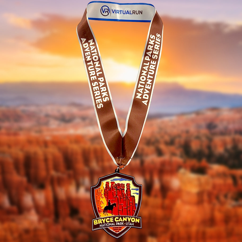 Virtually Run your way around America’s Best Idea: Our National Parks. The 2021 National Parks Adventure series is a virtual nationwide tour. One of Utah’s Five National Parks, Bryce Canyon is filled with giant natural amphitheaters. Visitors are provided with spectacular views of the parks red, white, and orange colors. Natural rock formations are the signature of Bryce Canyon National Park, and are highlighted on this 5K & 10K finishers medal. Tour the park virtually by running, walking, hiking, or cross country skiing. After completing your 5K or 10K, this Bryce Canyon National Park award medal is your prize