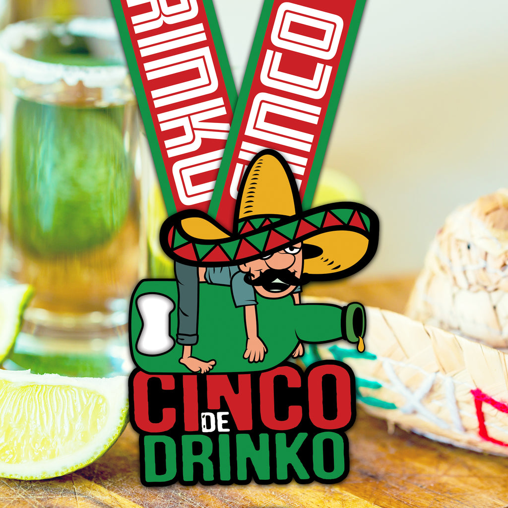 Cinco de Drinko! Run now, drink later! Earn your beverages by hitting the streets for a fiesta 5K. Grab your best running (or drinking) buddies for this party. Whether your 5K time is blazing hot, or you are looking for more of a mild flavor, this Cinco de Drinko run is sure to be a fun one. Spice up your weekend with a virtual run! After the run is over, the beers will be poppin’ with this built-in bottle opener. Package includes 5K runners bib.