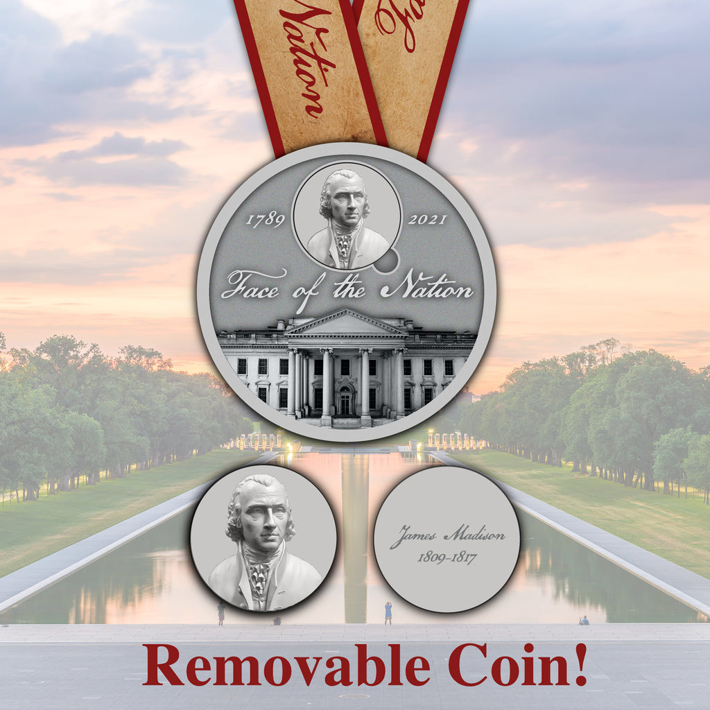 Honor the history of United States presidents with the Face of the Nation 5K. Many great leaders shaped the face of our nation, including the fourth President of the United States of America, James Madison. Set against the backdrop of the White House, President Madison stands strong as a face of our nation. James Madison is hailed as the Father of the Constitution, for his key role in drafting both the Constitution, and the Bill of Rights. A lifetime of public service and fighting for democracy are the hallmark legacy for President Madison. Commemorate this legacy of outstanding leadership, by completing this 5K and collecting this the fourth in the Face of the Nation medal series.