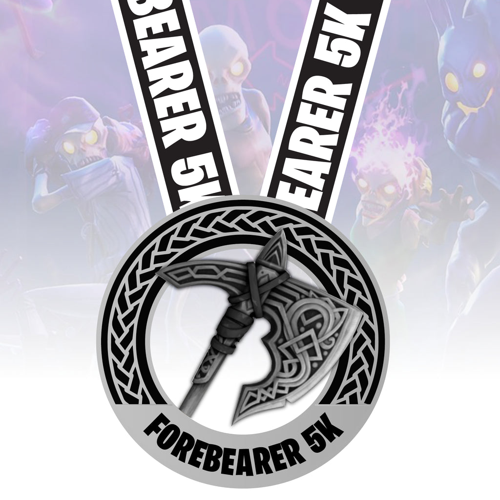 The Forebearer, one rare harvesting tool in the game, one ultra cool Virtual 5K Finishers Award Medal. The Forebearer is a cool-looking Nordic battle axe with a wonderful runic pattern on the steel edge. Although it looks more like a weapon than a harvesting tool, this cosmetic item does not have any function or affect the efficiency of the default harvesting tool. Wielded by countless generations. Worn proudly around your neck after you complete this virtual race. Medal comes with a downloadable and personalizable runner’s bib.