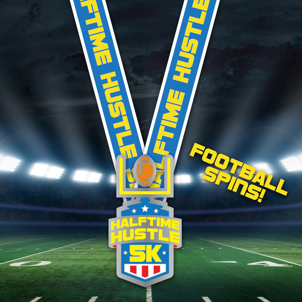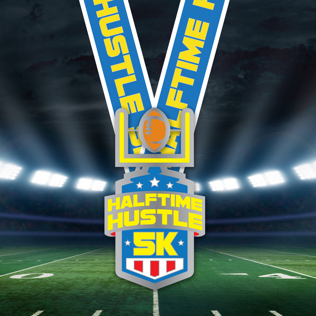 Hustle on out for the Halftime Hustle Virtual 5K! Hit the pavement like you’re running out of the tunnel for the Big Game in this football themed 5K. Whether you’re staying in shape for gridiron glory, or a successful season of armchair quarterbacking, this 5K is for football lovers. A great activity for your Fantasy Football league buddies, or fellow fans. Choose your favorite jersey, team sweats, and foam finger to gear up for your race day. Score big by flicking this football medal through the uprights! Halftime Hustle 5K package includes participant bib.