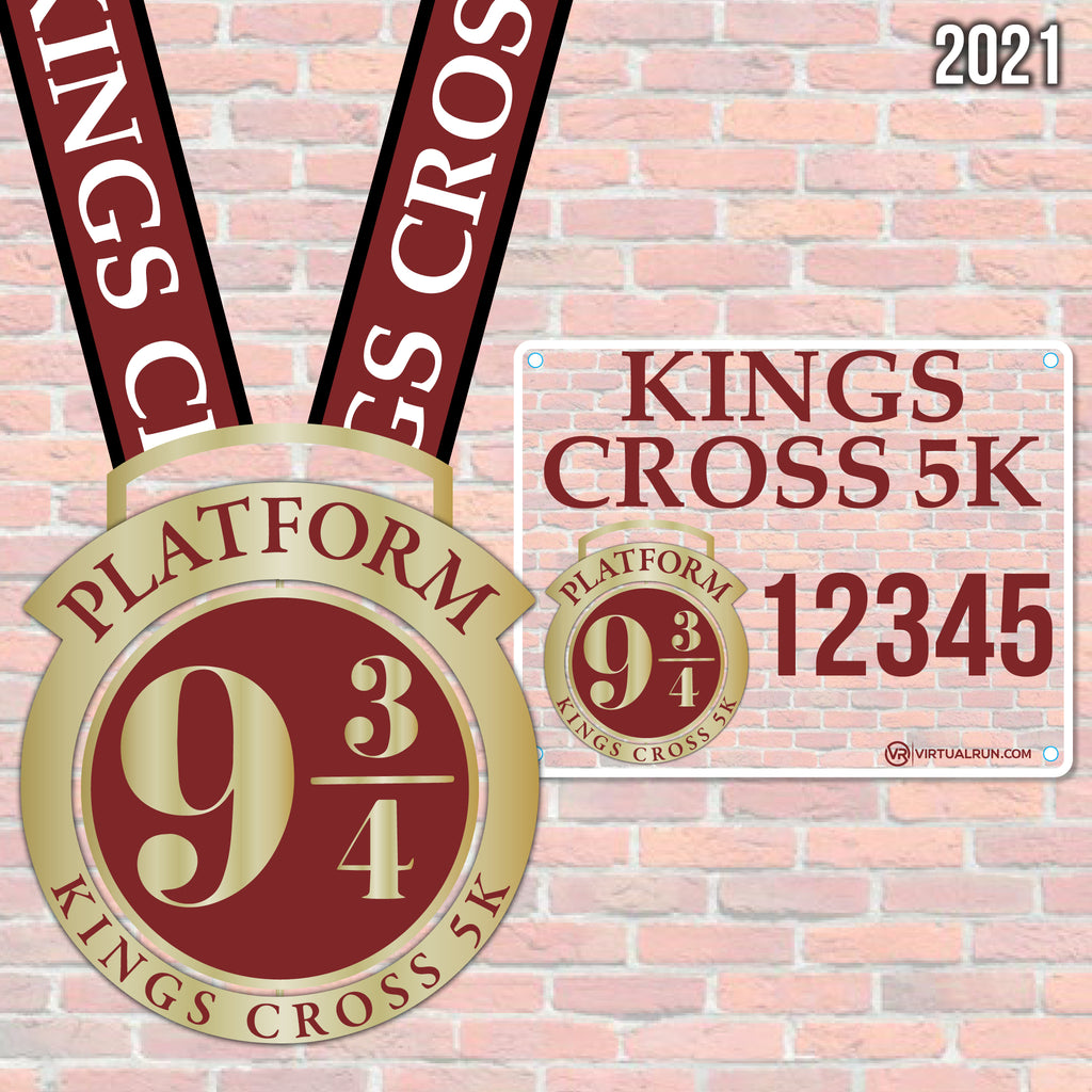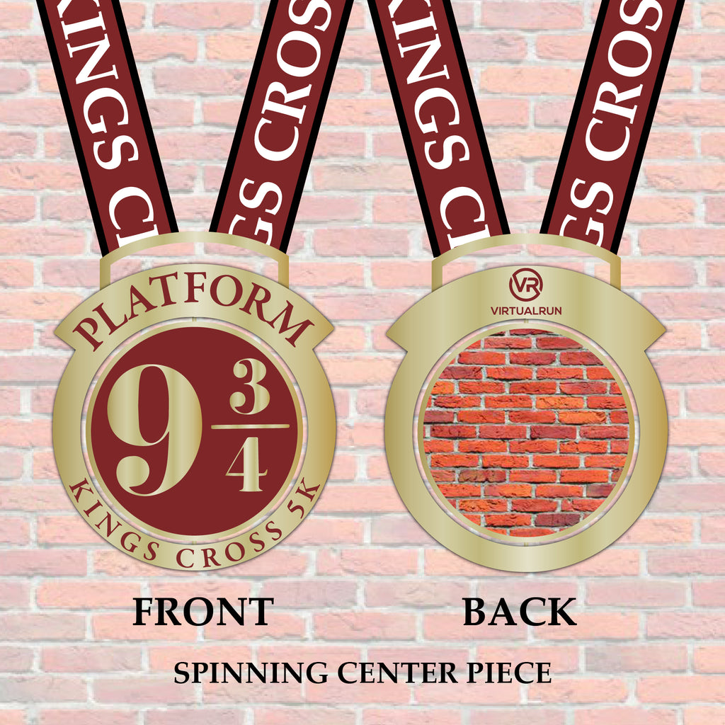 Looking to run your way to a Witchcraft & Wizardry School? In order to do so, one must run directly at the solid barrier dividing platforms nine and ten at Kings Cross Station. Once through this magical barrier, the train awaits. This Platform 9¾ Virtual 5K award showcases the magical barrier on this special spinning medal. Pass your 5K challenge and enter through the barrier! This 5K event can be completed on your own schedule. When you finish the five kilometers the brick wall will open for you, and magical glory awaits! This virtual event includes a magical spinning award medal and participant bib.