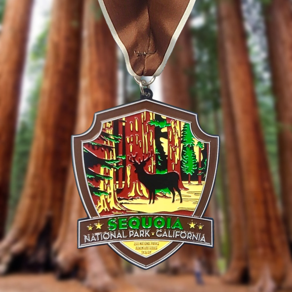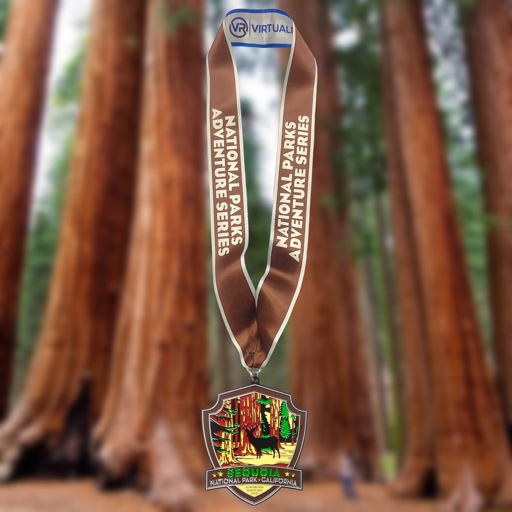 Virtually Run your way around America’s Best Idea: Our National Parks. The 2021 National Parks Adventure series is a virtual nationwide tour. The towering giant trees of Sequoia National Park are the inspiration for this Virtual 5K & 10K race. Virtually run or walk through groves of massive Sequoias, including the largest tree on Earth, the General Sherman tree. These massive redwoods sit on the finisher’s medal that you will earn when you complete your 5K or 10K race.