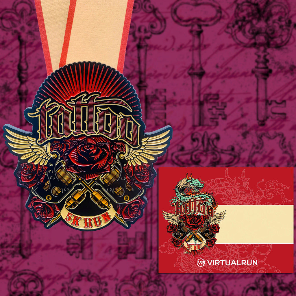 Ink your place in Virtual 5K history with the Tattoo 5K. This event celebrates tattoos, tattoo artists, and tattoo appreciators. You can complete the race on your own schedule. Treadmill, walk, or run this virtual 5K event. This event features a gorgeous, tattoo style rose medal. Make it a family affair by getting your crew together for an active day of fun. Medal comes with a downloadable and personalizable runner’s bib!